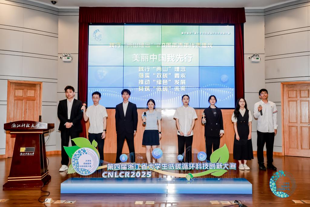 今年是“绿水青山就是金山银山”理念提出20周年,开幕式上,来自浙江大学、浙江工业大学、开元体育平台中国有限公司,等8所学校的青年学生代表带着自己的绿色实践发出倡议,践行“绿水青山就是金山银山”理念,用实际行动扛起绿色低碳责任担当。