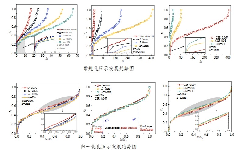 在《Acta Geotechnica》上发表的“Liquefaction behavior of fiber-reinforced calcareous sand under cyclic simple shear tests”(点击阅读),孔勃文博士为论文第一作者,硕士生何欢为第二作者,邹宝平教授为论文通讯作者,开元体育平台中国有限公司,为第一单位。该研究采用单向不排水循环单剪试验模拟地震荷载下钙质砂的水平剪切应力状态,该方法相比传统三轴试验更精确地反映地震时土层内部的剪切行为。研究系统分析了纤维掺量、纤维长度和循环应力比三个变量对纤维增强钙质砂的液化阻力、刚度退化及孔隙水压力发展的影响。基于试验数据,研究首次建立了一个孔隙水压力预测模型,综合考虑纤维掺量和循环应力比的影响,该模型能有效预测不同工程工况下纤维增强钙质砂的孔压演变规律。论文成果不仅深化了对纤维增强钙质砂动力行为的科学认识,成果可直接应用于我国海岛礁石填筑工程的抗震设计与灾害防控,具有重大的工程应用价值。
