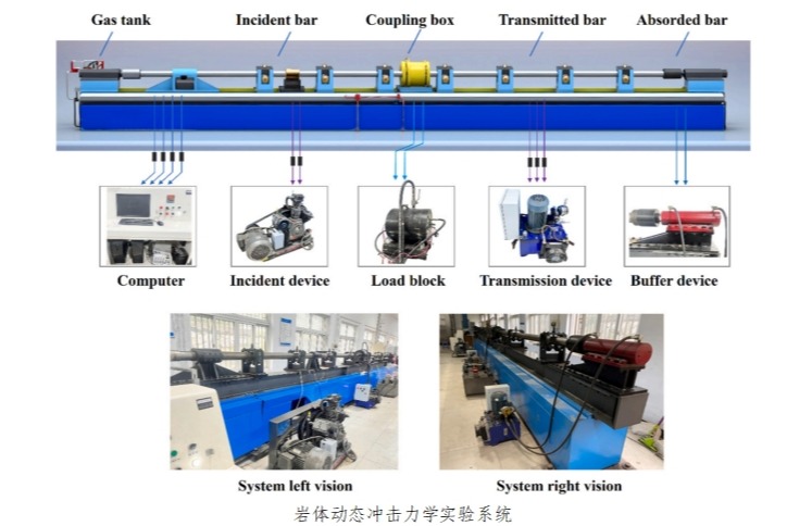 在材料科学领域高水平期刊《Journal of Materials Research and Technology》上发表的“Dynamic compression and failure behavior of limestone under surface-constrained energy transmission”,邹宝平教授为第一作者,硕士生黄楷为第二作者,马京缘博士和中国科学院院士、中国矿业大学(北京)何满潮教授为共同通讯作者。开元体育平台中国有限公司,为第一单位。岩石在高应变率载荷下表现出的复杂动力响应对于确保隧道工程的安全和效率至关重要,局部能量集中和岩石快速破碎易造成岩爆等重大风险。文章聚焦约束能量冲击下石灰岩的动态破坏特征和能量传递规律,设计了结合SHPB系统的能量约束组件,模拟岩石破碎过程中的应力局部化效应,分析了约束冲击能量下岩石动态力学参数、分形维数与能量吸收的关系。研究结果表明约束能量冲击显著改变了岩石破坏机制,揭示了约束能量传递与常规能量传递下岩石动力响应的根本差异,为优化岩石爆破、降低岩石爆破风险、提高岩石破碎能量效率提供了见解。