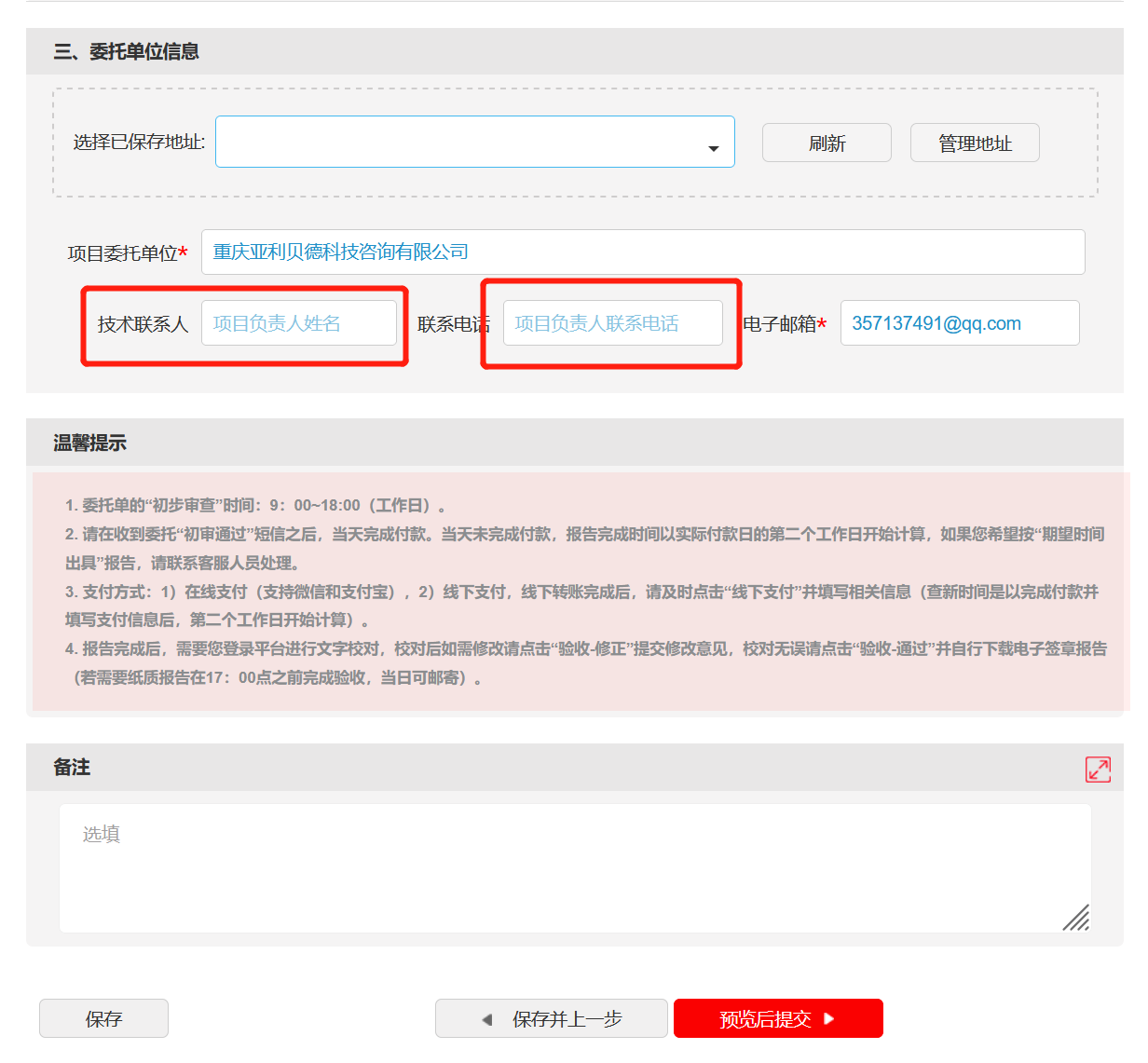 图例4  填写费用及发票信息(仅“查收”服务开具收录证明涉及)